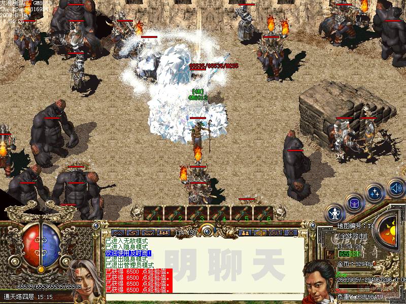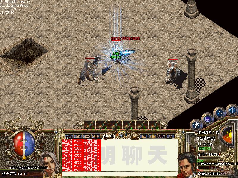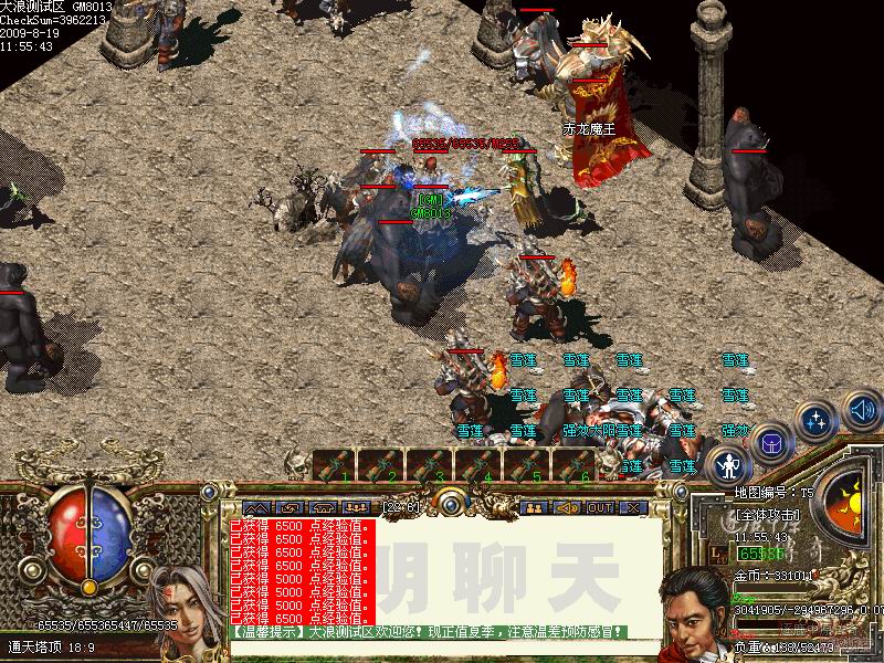 通天塔这个地图。难度比较大。通天总共分5层.前4层都是一样的。每前进一层都要清光这层所有的怪物.如果在规定时间内没有清光所有怪物。那么.就会又刷出一批怪物..到了通天5层就会看到赤龙魔王.一个满身都是宝的怪物.