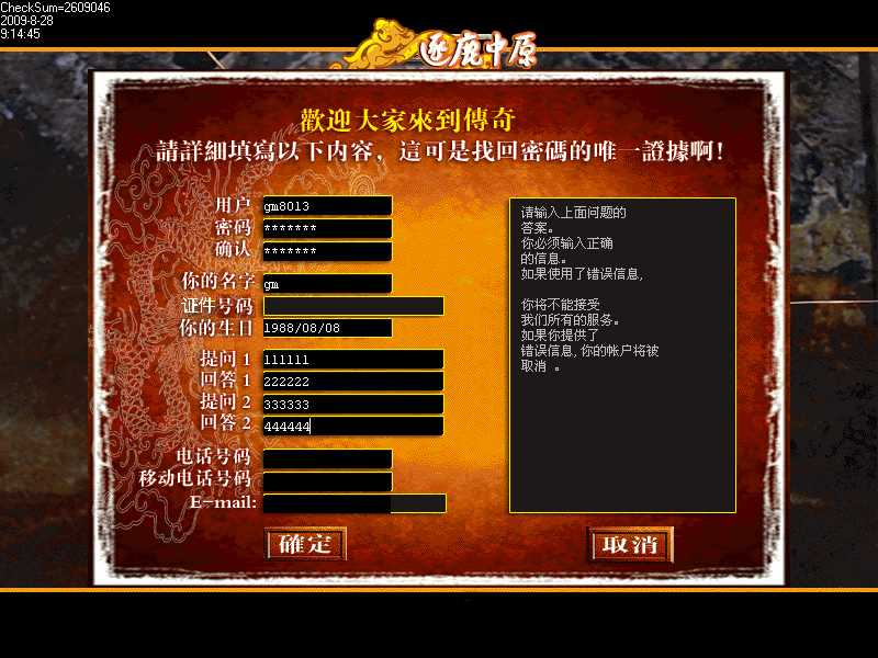 在这里大家要注意输入注册信息是有一定时间限制的。如果超过了一定时间将提示重新输入。。。